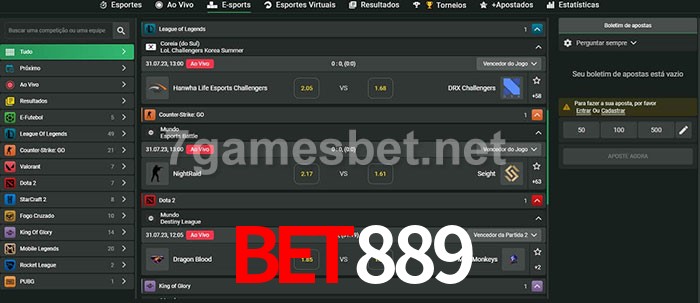O bet889 oferece uma grande seleção de opções de apostas em e-sports com probabilidades competitivas